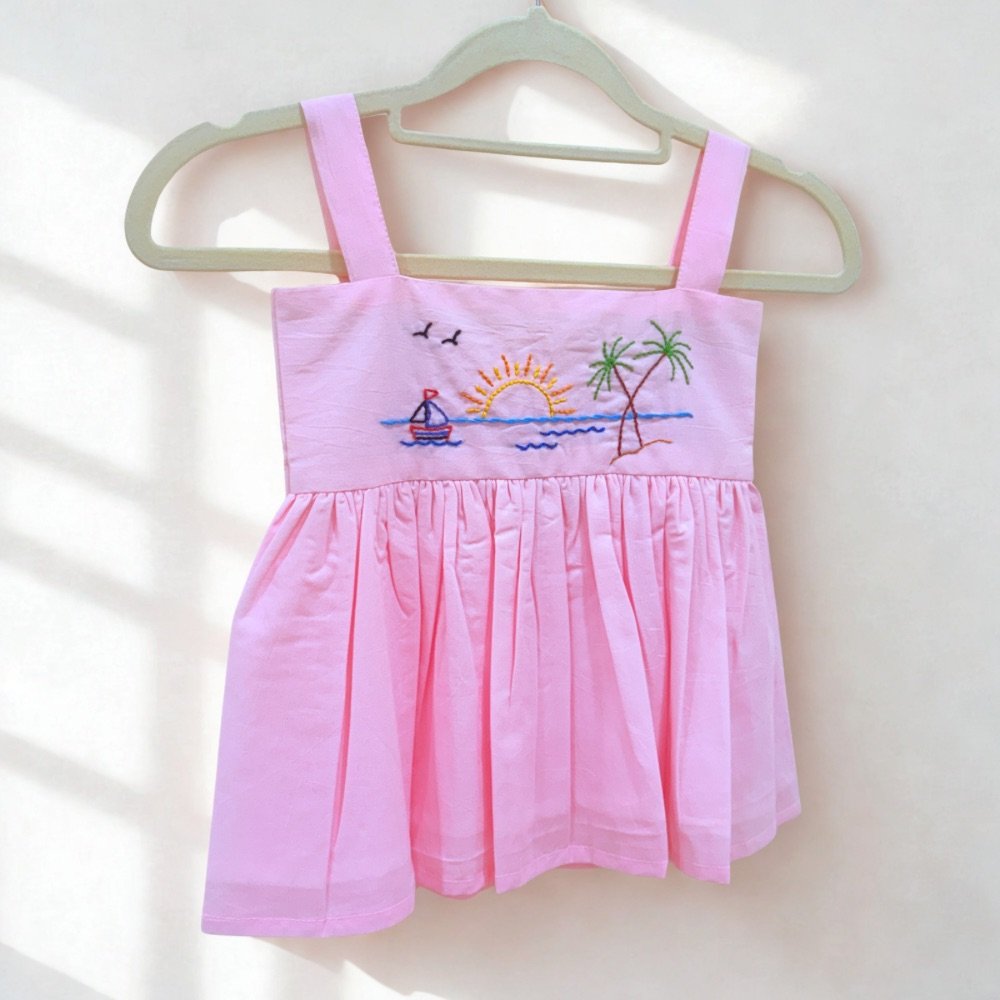 Delicate, refined, and beautifully detailed – the seaside breeze frock in baby pink is a timeless piece inspired by the serene charm of coastal escapes. Thoughtfully crafted to evoke a sense of playful luxury.